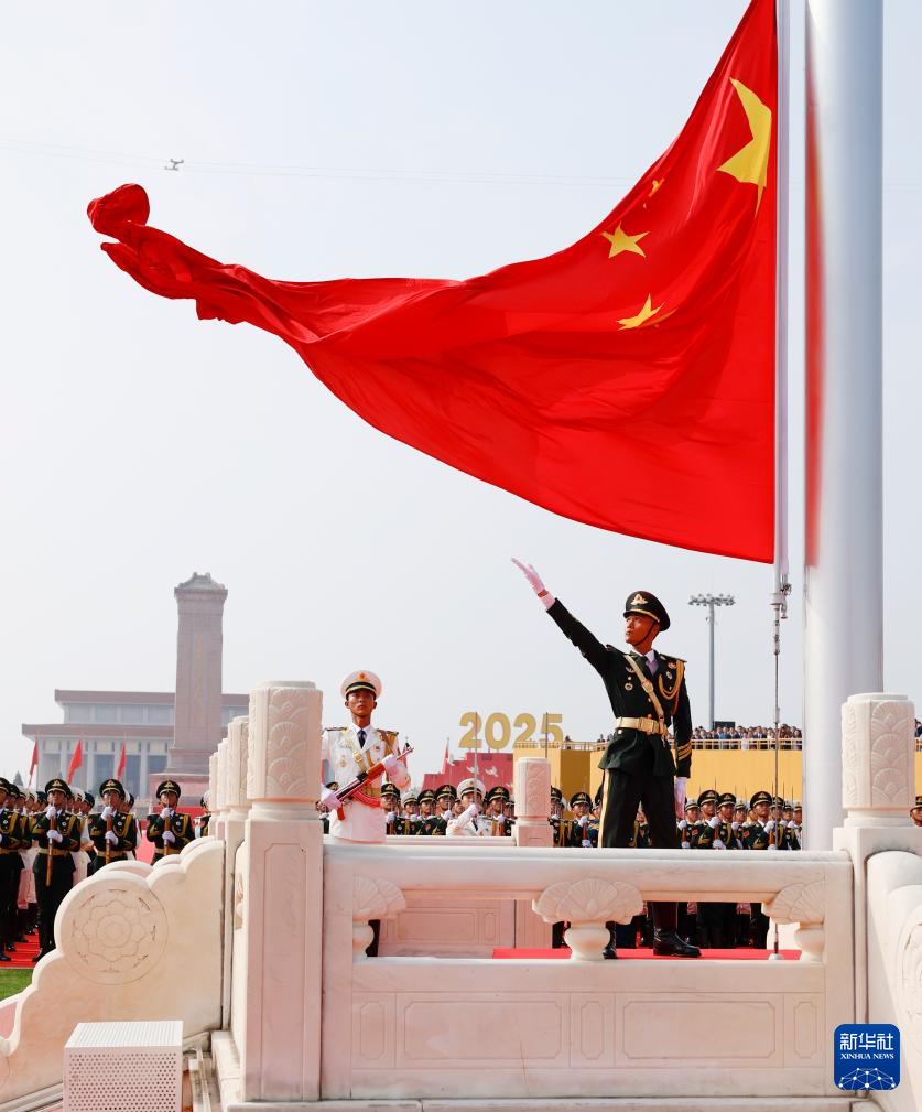 9月3日,紀(jì)念中國(guó)人民抗日戰(zhàn)爭(zhēng)暨世界反法西斯戰(zhàn)爭(zhēng)勝利80周年大會(huì)在北京隆重舉行。這是天安門廣場(chǎng)舉行隆重的升國(guó)旗儀式。