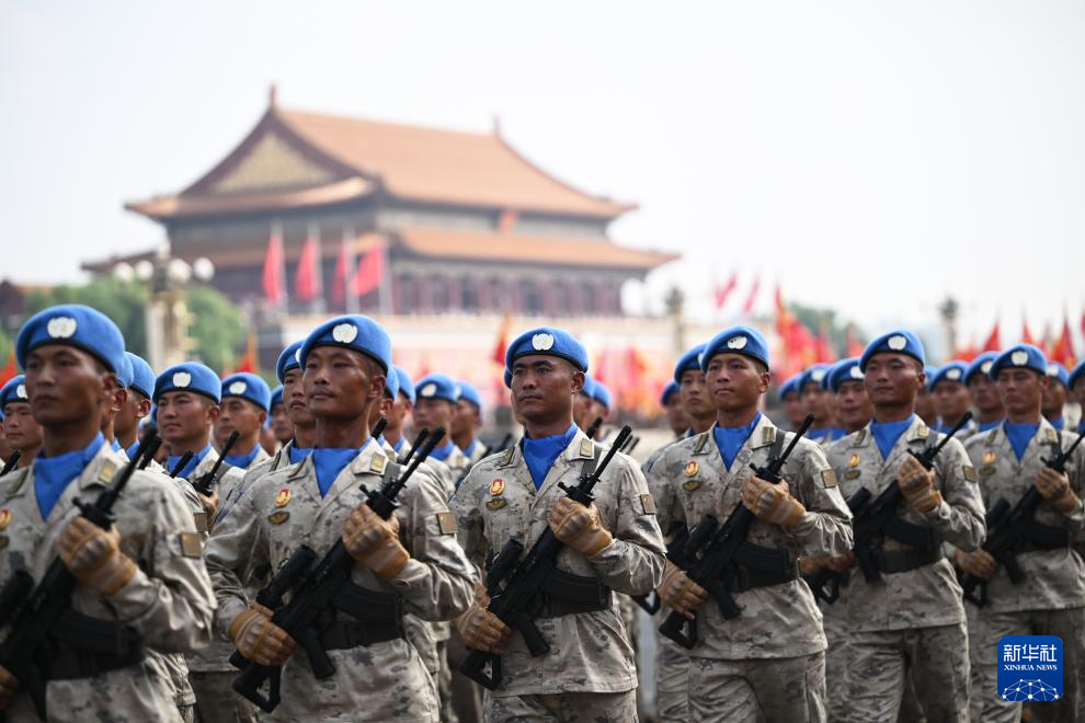 9月3日,紀念中國人民抗日戰(zhàn)爭暨世界反法西斯戰(zhàn)爭勝利80周年大會在北京隆重舉行。這是維和部隊方隊接受檢閱。