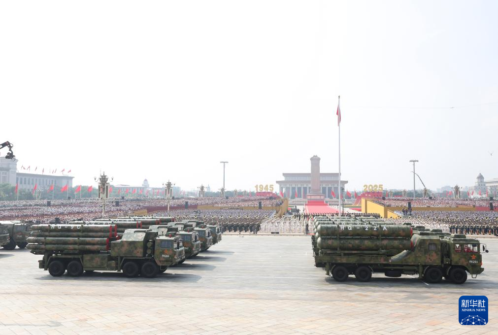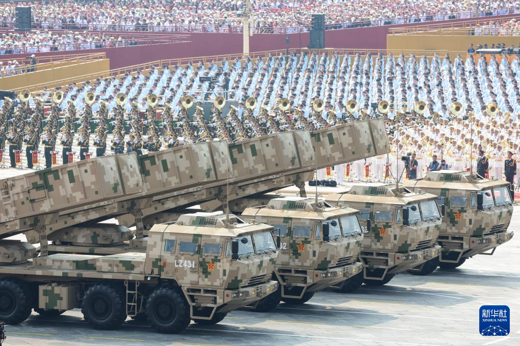 9月3日,紀念中國人民抗日戰(zhàn)爭暨世界反法西斯戰(zhàn)爭勝利80周年大會在北京隆重舉行。這是遠程火炮方隊接受檢閱。