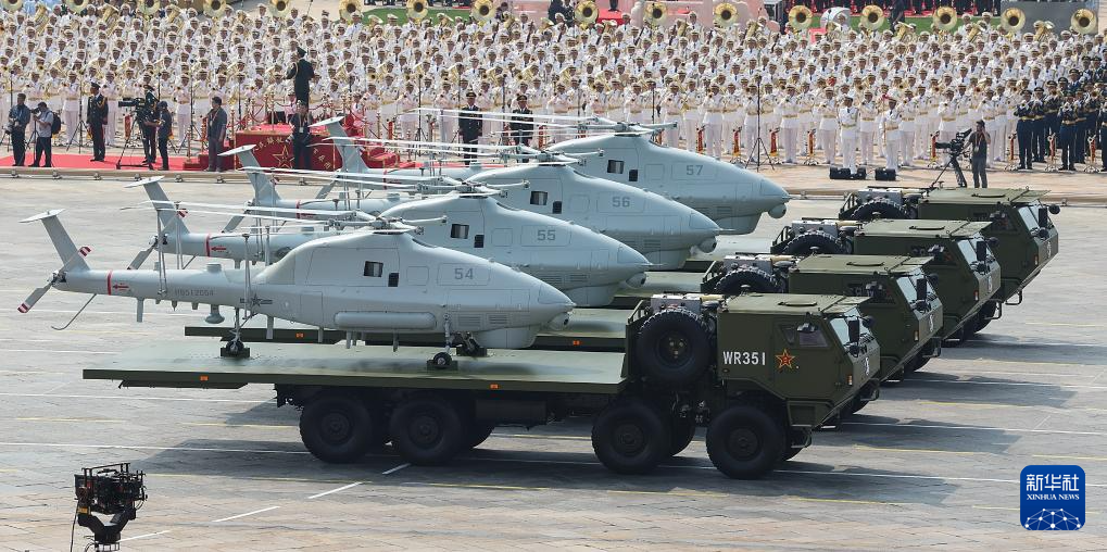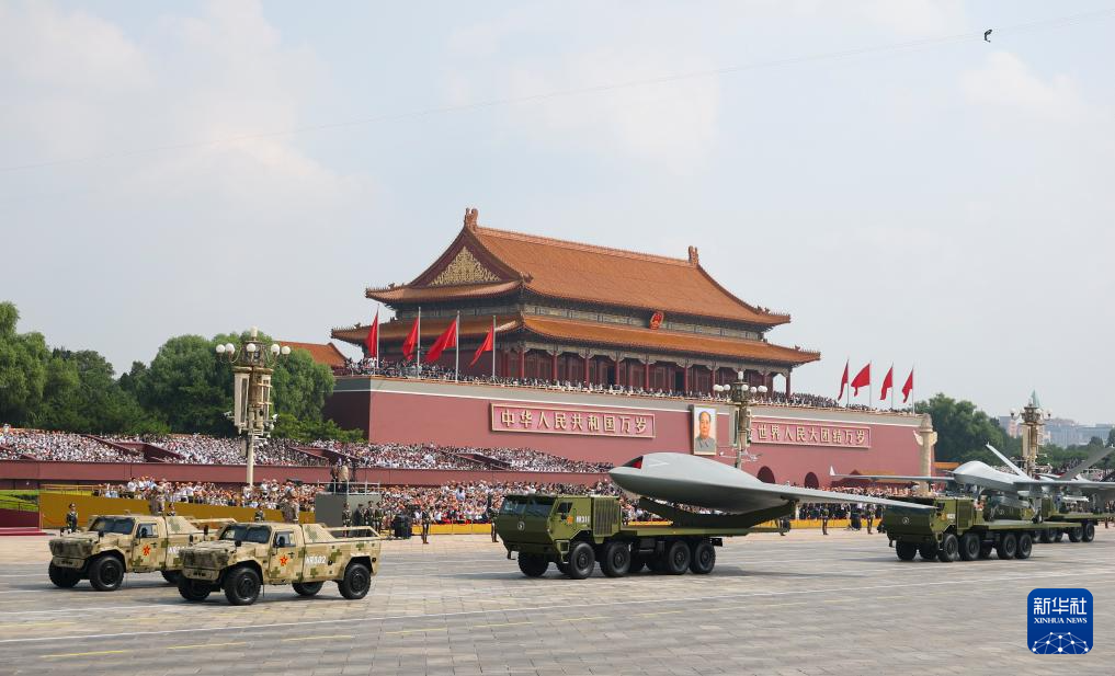 9月3日,紀念中國人民抗日戰(zhàn)爭暨世界反法西斯戰(zhàn)爭勝利80周年大會在北京隆重舉行。這是空中無人作戰(zhàn)方隊接受檢閱。