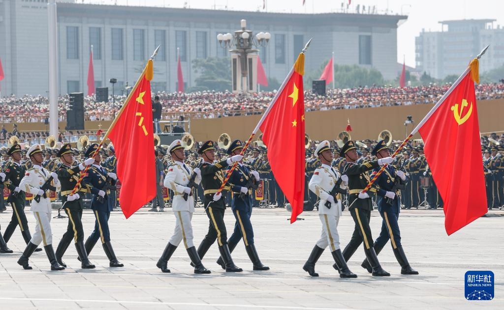 9月3日,紀念中國人民抗日戰(zhàn)爭暨世界反法西斯戰(zhàn)爭勝利80周年大會在北京隆重舉行。這是戰(zhàn)旗方隊接受檢閱。