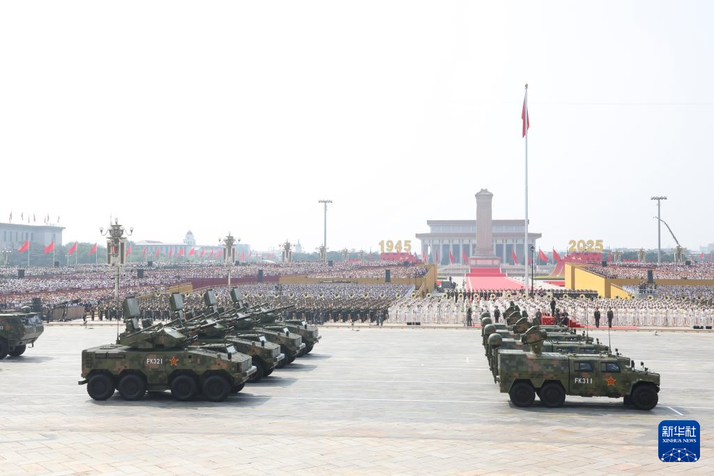 9月3日,紀念中國人民抗日戰(zhàn)爭暨世界反法西斯戰(zhàn)爭勝利80周年大會在北京隆重舉行。這是艦載防空武器方隊接受檢閱。