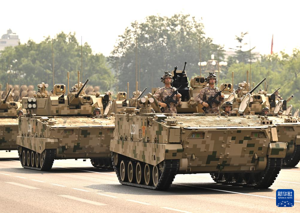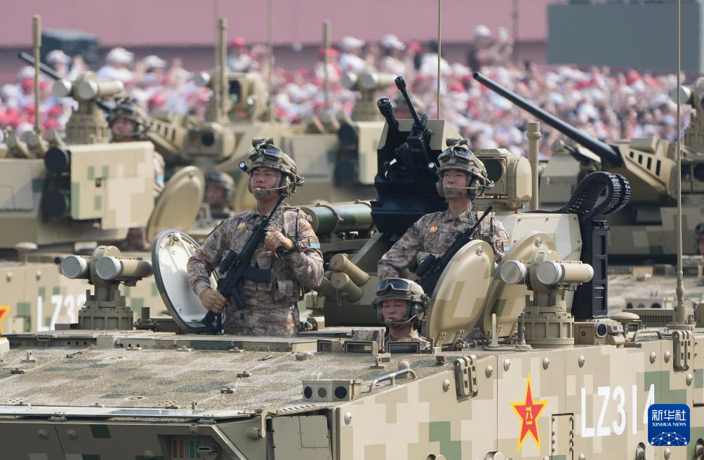 9月3日,紀(jì)念中國人民抗日戰(zhàn)爭暨世界反法西斯戰(zhàn)爭勝利80周年大會在北京隆重舉行。這是信息支援方隊接受檢閱。