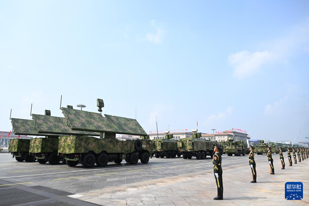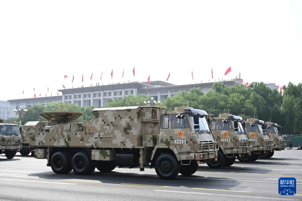 9月3日,紀(jì)念中國人民抗日戰(zhàn)爭暨世界反法西斯戰(zhàn)爭勝利80周年大會在北京隆重舉行。這是電子對抗方隊接受檢閱。