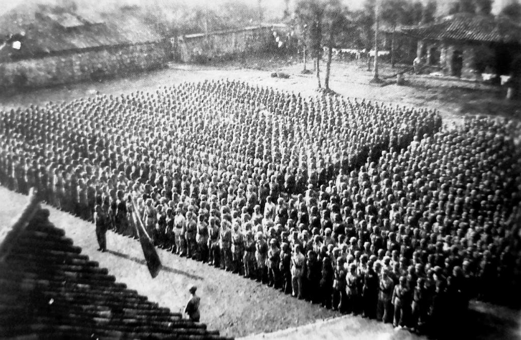 1939年,南僑機(jī)工在昆明潘家灣訓(xùn)練所接受軍事訓(xùn)練(資料照片)。 新華社發(fā)