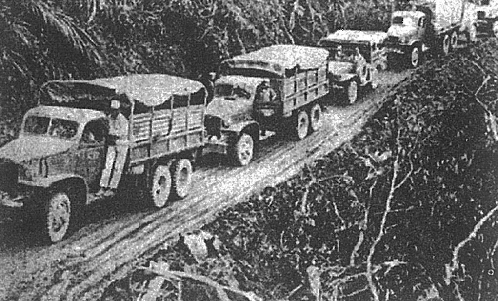 南僑機(jī)工駕車行駛在滇緬公路上(資料照片)。 新華社發(fā)