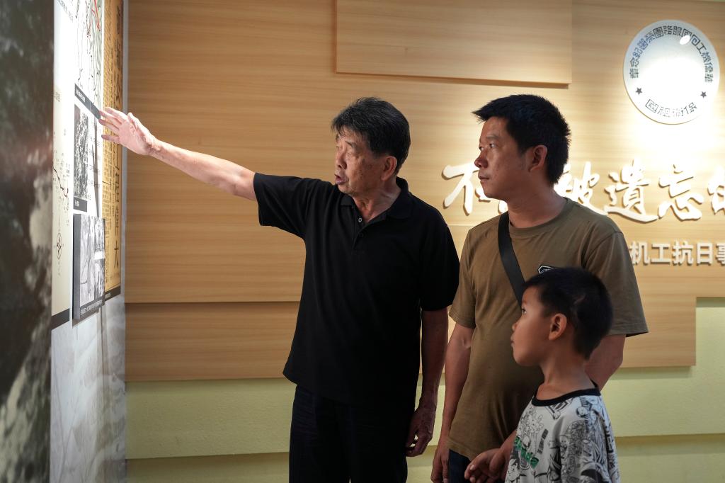 2025年7月18日,在昆明市博物館南僑機(jī)工分館,張云鵬(左)為參觀的游客講述南僑機(jī)工的故事。