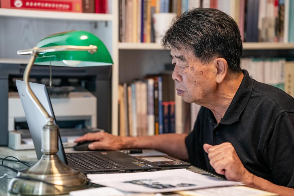 2025年7月17日,張云鵬在書房整理南僑機(jī)工相關(guān)資料。