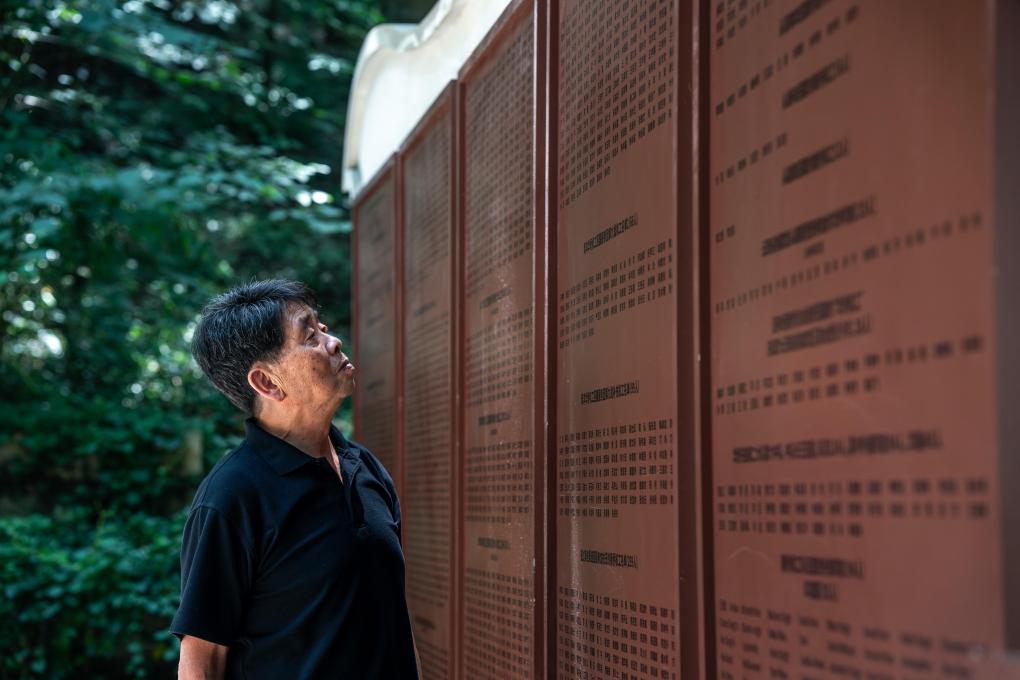 2025年7月18日,在昆明市西山森林公園,張云鵬凝視南僑機(jī)工英名錄墻上父親的名字。
