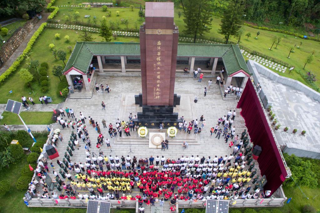 2017年7月7日,各界人士在云南省瑞麗市畹町鎮(zhèn)南洋華僑機(jī)工回國抗日紀(jì)念碑前唱國歌,祭奠先烈。