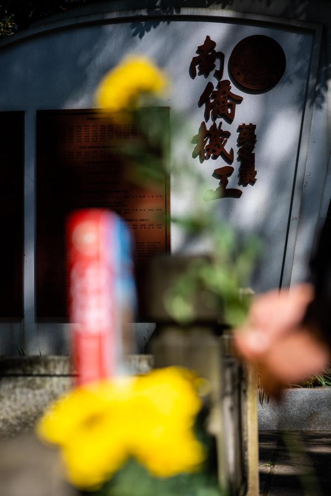 2022年11月2日,民眾在昆明西山的南洋華僑機(jī)工抗日紀(jì)念碑前獻(xiàn)花。 新華社記者 江文耀 攝