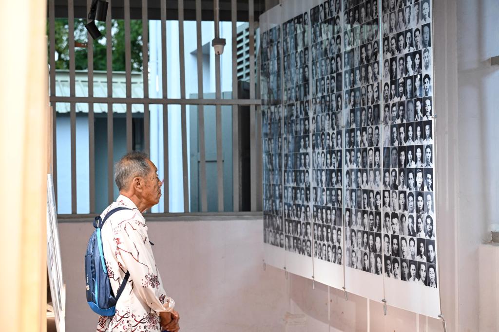 2025年8月14日,在剛揭幕的馬來西亞吉隆坡南僑機(jī)工紀(jì)念館內(nèi),一名老人觀看南僑機(jī)工照片墻。 新華社記者 程一恒 攝