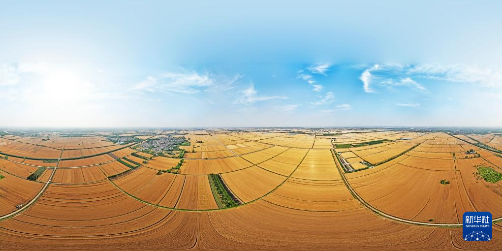 6月4日在山東省臨沂市郯城縣郯城街道拍攝的金色麥田(無人機全景照片)。新華社發(fā)(張春雷攝)