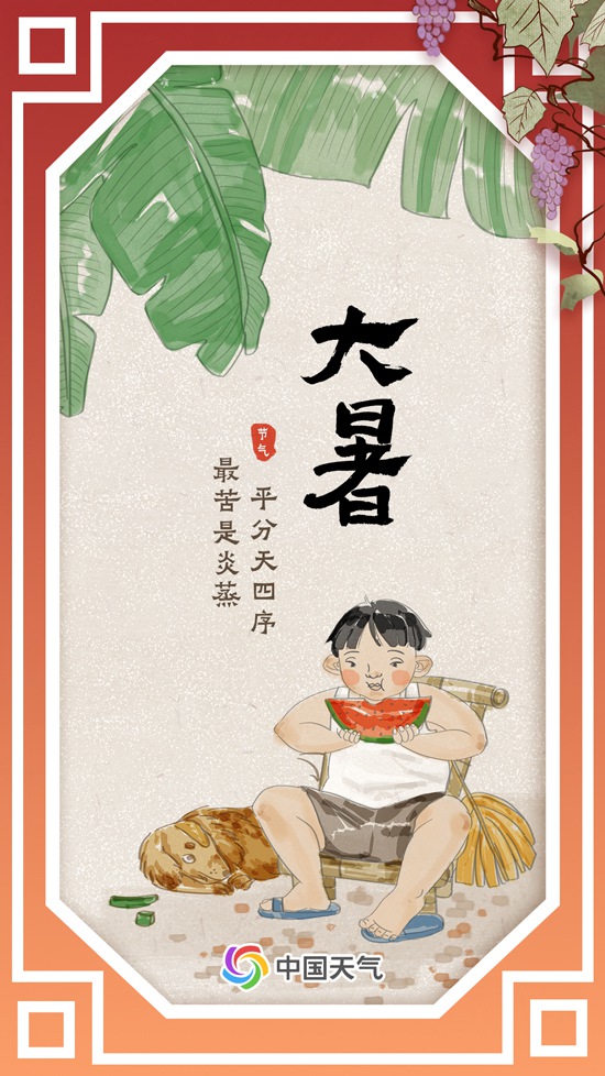 常年大暑時(shí)節(jié),我國(guó)夏季范圍擴(kuò)展到約530萬平方公里,達(dá)到一年中的鼎盛。“大者,乃炎熱之極也?!贝笫钍侨曜顭岬墓?jié)氣,正值三伏天開啟,我國(guó)大部高溫頻繁,且濕度較大,天氣時(shí)常又悶又熱,民間有“大暑小暑,上蒸下煮“的說法。