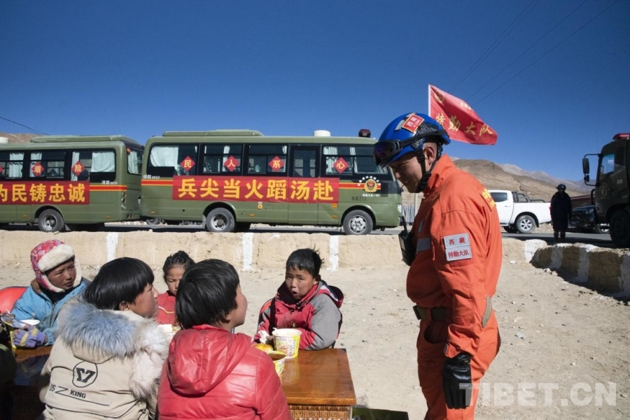 圖為在定日縣曲洛鄉(xiāng)措昂村受災(zāi)安置點(diǎn),拉薩森林消防大隊(duì)為受災(zāi)小朋友搭建起的臨時(shí)“小飯桌”,為村中受災(zāi)群眾提供熱乎的便餐。(攝于2025年1月8日) 攝影:趙振宇