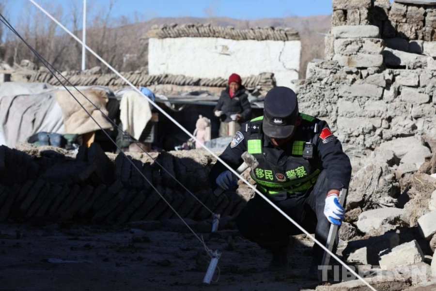 圖為武警官兵與公安民警在定日地震受災(zāi)最嚴(yán)重的村莊之一定日縣長(zhǎng)所鄉(xiāng)古榮村為受災(zāi)群眾轉(zhuǎn)移財(cái)產(chǎn) (攝于2025年1月10日) 攝影:王淑