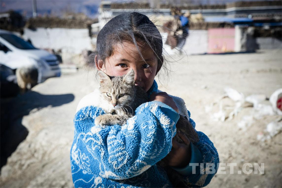 圖為在定日縣受災(zāi)群眾安置點(diǎn)內(nèi),一名小女孩在冬日里抱起一只小貓,給予小貓溫暖,也傳給我們力量。(攝于2025年1月10日) 攝影:趙振宇