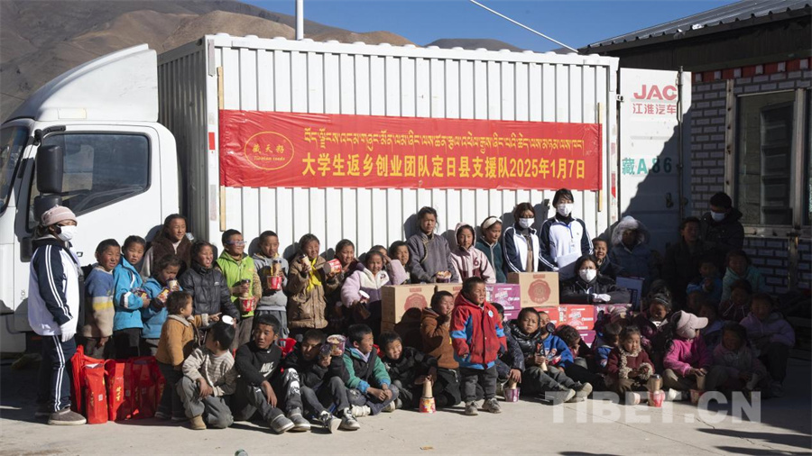 圖為拉薩市當(dāng)雄縣烏瑪塘鄉(xiāng)巴嘎村“00后”返鄉(xiāng)創(chuàng)業(yè)大學(xué)生自發(fā)赴定日縣捐贈(zèng)物資(攝于2025年1月8日) 攝影:趙振宇