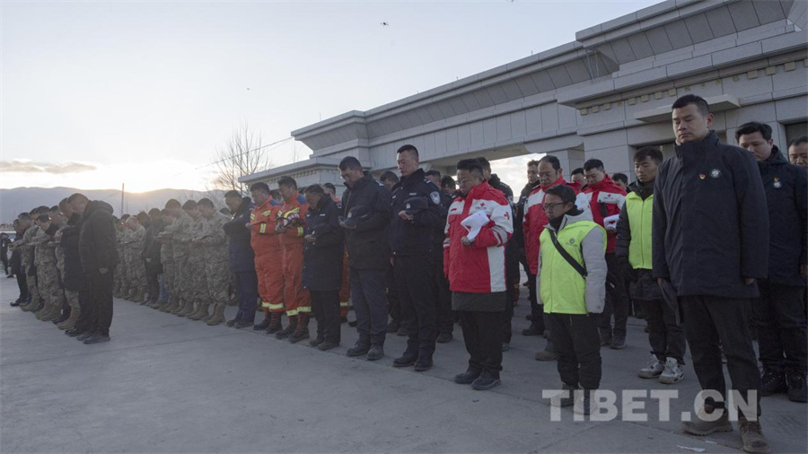 圖為西藏定日6.8級(jí)地震遇難同胞悼念儀式在受災(zāi)最嚴(yán)重的定日縣長(zhǎng)所鄉(xiāng)舉行(攝于2025年1月13日)攝影:趙振宇
