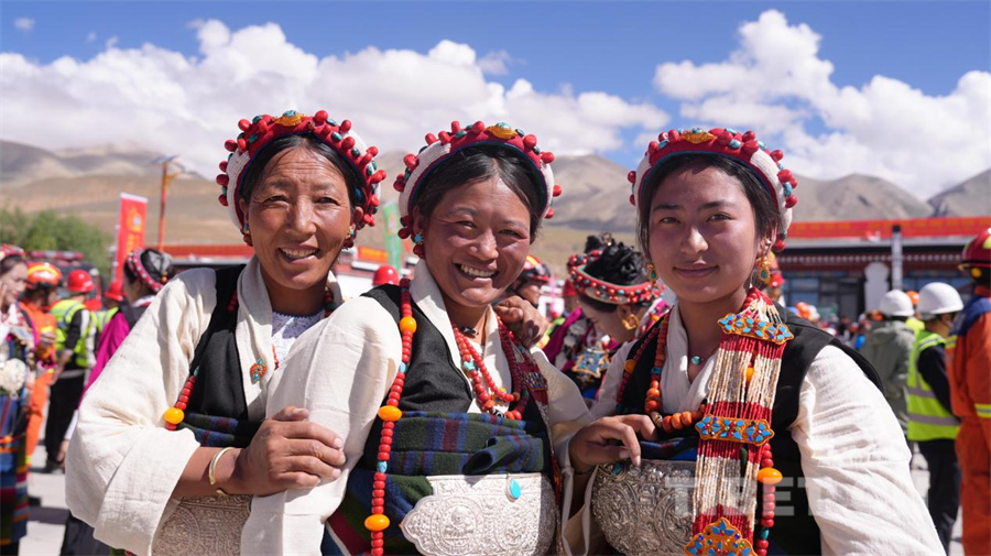 圖為西藏定日6.8級(jí)地震災(zāi)后重建民房首批入住儀式現(xiàn)場(chǎng),群眾笑得格外燦爛(攝于2025年8月15日)攝影:德吉卓瑪