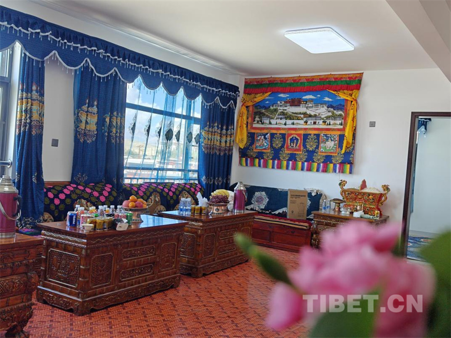 圖為長(zhǎng)所鄉(xiāng)森嘎村尼瑪次仁的新居客廳(攝于2025年8月15日)攝影:次旦拉姆