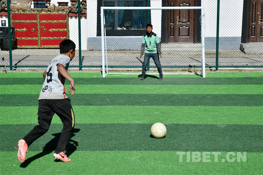 圖為定日縣長(zhǎng)所鄉(xiāng)森嘎村的足球少年們擁有了自己第一塊標(biāo)準(zhǔn)化的足球場(chǎng)地(攝于2026年1月5日)攝影:趙振宇