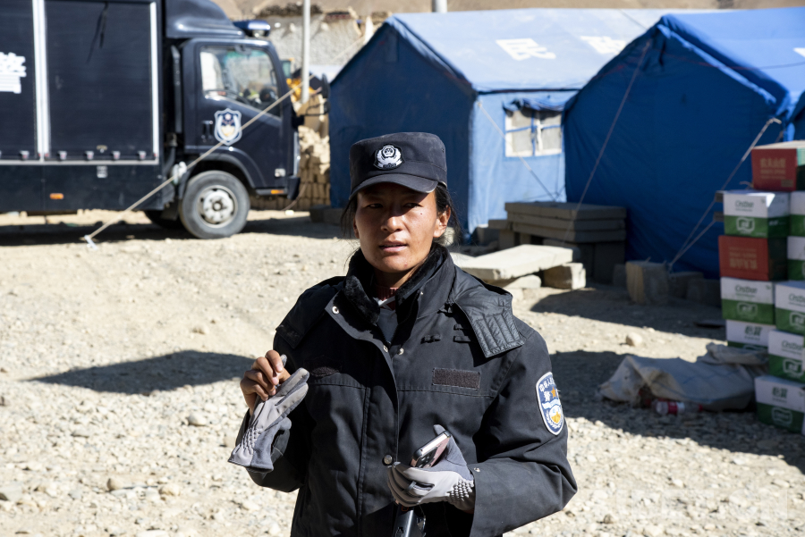 在嘎白村,有一位年齡最小的黨員名叫阿旺德金,去年剛剛大學(xué)畢業(yè)的她選擇到嘎白村成為一名科技振興專干。相較于塔杰書記、頓珠巴姆隊長以及次仁玉珍來說,她的工作經(jīng)驗尚不豐富,在大災(zāi)大難面前雖還不能獨(dú)當(dāng)一面,但在自己的崗位上兢兢業(yè)業(yè)。13日,嘎白村的村民正在從安置帳篷搬往活動板房居住,阿旺德金在一戶又一戶的帳篷內(nèi)幫助受災(zāi)群眾收拾個人物品。