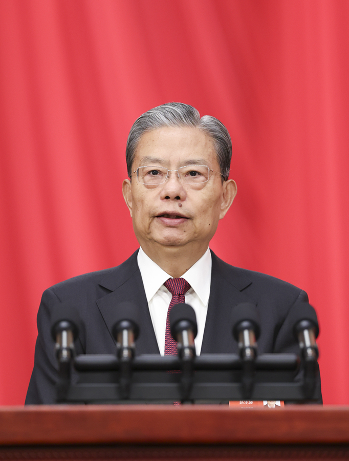 3月8日,十四屆全國人大三次會(huì)議在北京人民大會(huì)堂舉行第二次全體會(huì)議。受全國人大常委會(huì)委托,趙樂際委員長向大會(huì)報(bào)告全國人大常委會(huì)工作。新華社記者 丁海濤 攝