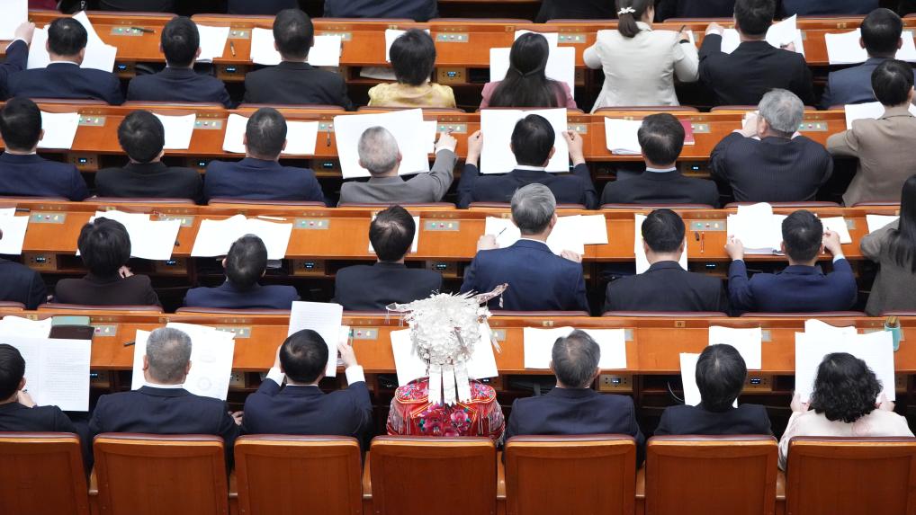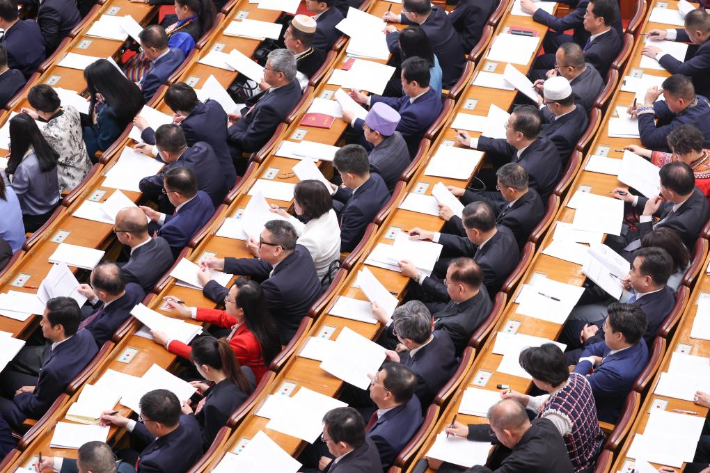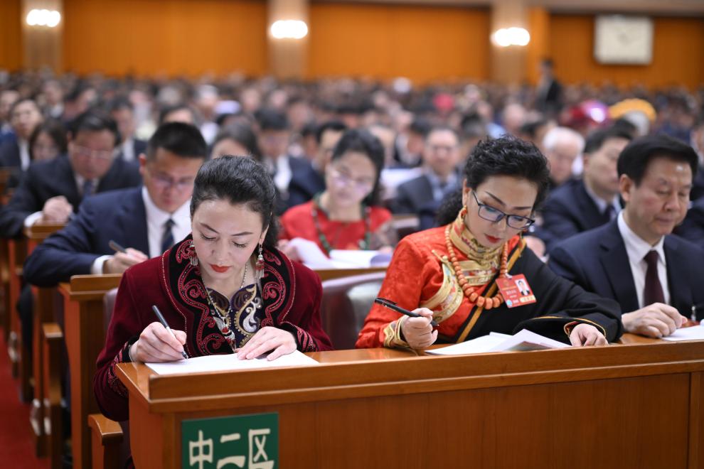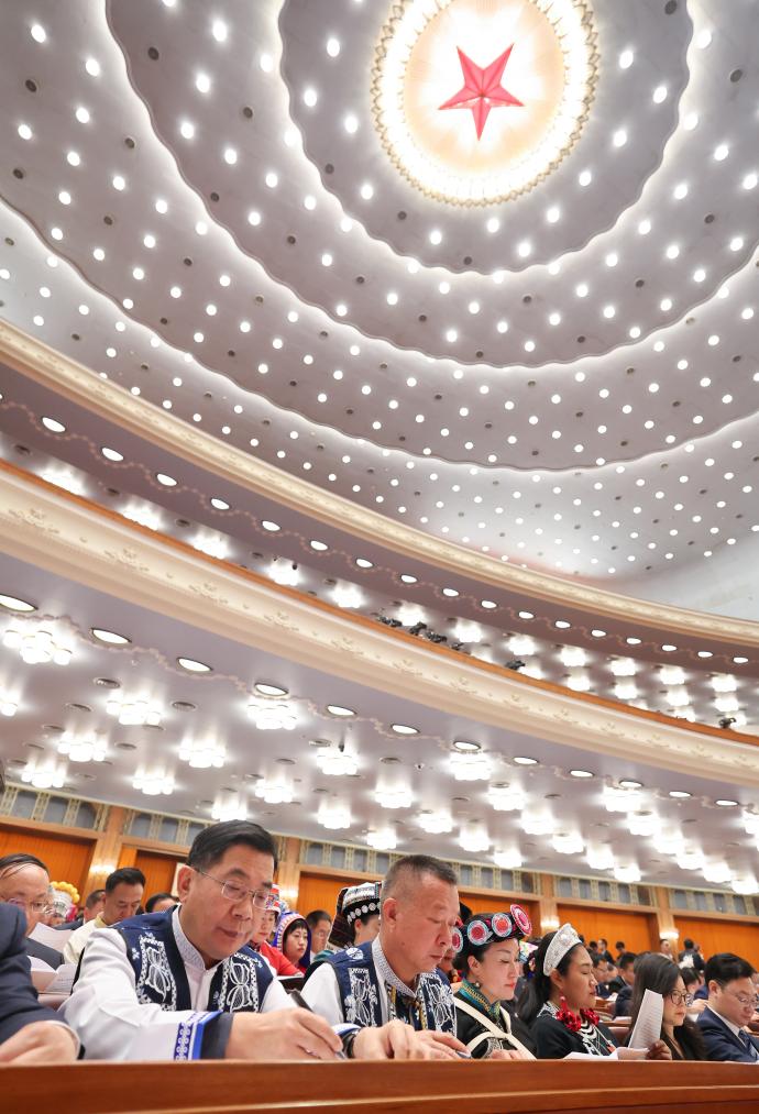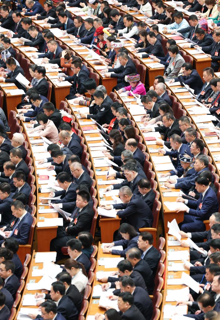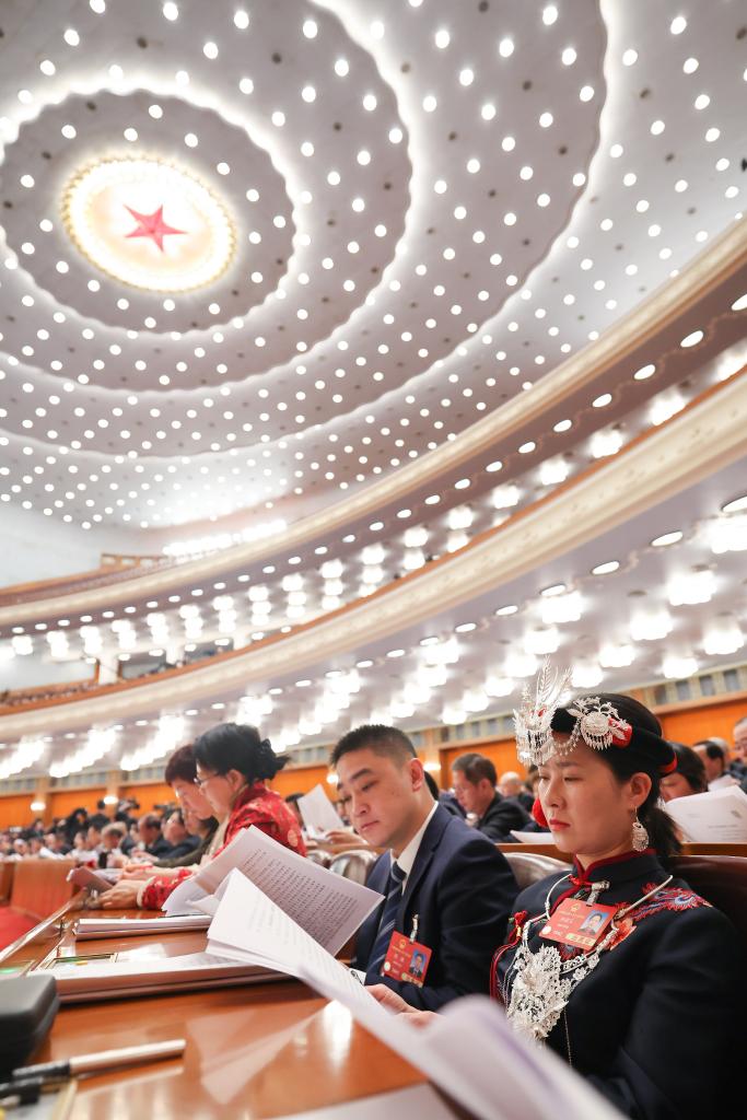 3月8日,十四屆全國人大三次會(huì)議在北京人民大會(huì)堂舉行第二次全體會(huì)議。新華社記者 盧燁 攝