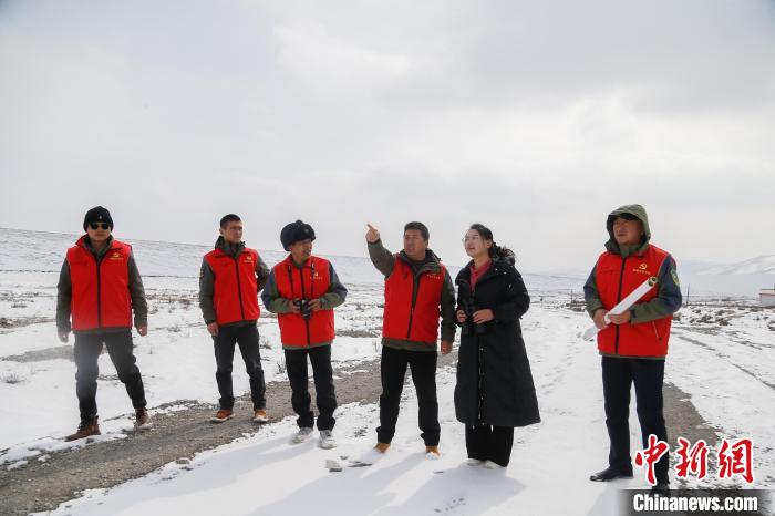 圖為2月22日郭金萍與祁連山國家公園硫磺溝管護(hù)站管護(hù)員一起巡護(hù)。中新社記者 馬銘言 攝