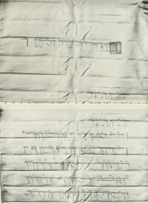 ▲(圖二)1703年六世達(dá)賴?yán)镱C發(fā)給白熱康薩的文告。(作者供圖)