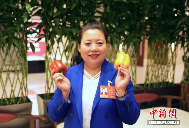 全國(guó)人大代表高向秋在兩會(huì)現(xiàn)場(chǎng)展示特色農(nóng)產(chǎn)品。受訪者供圖