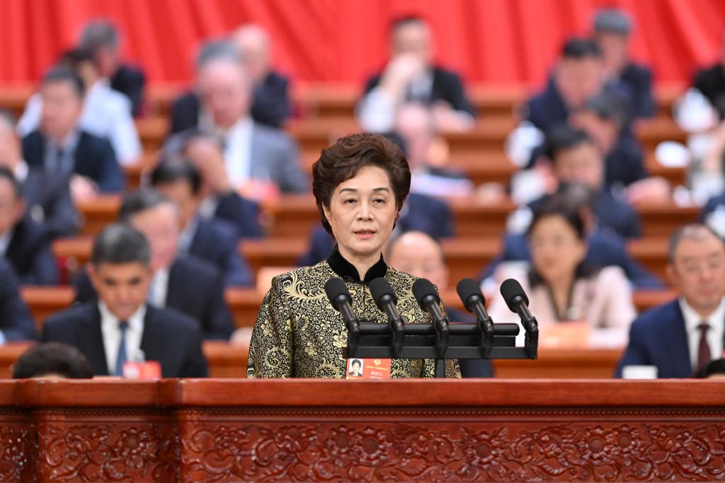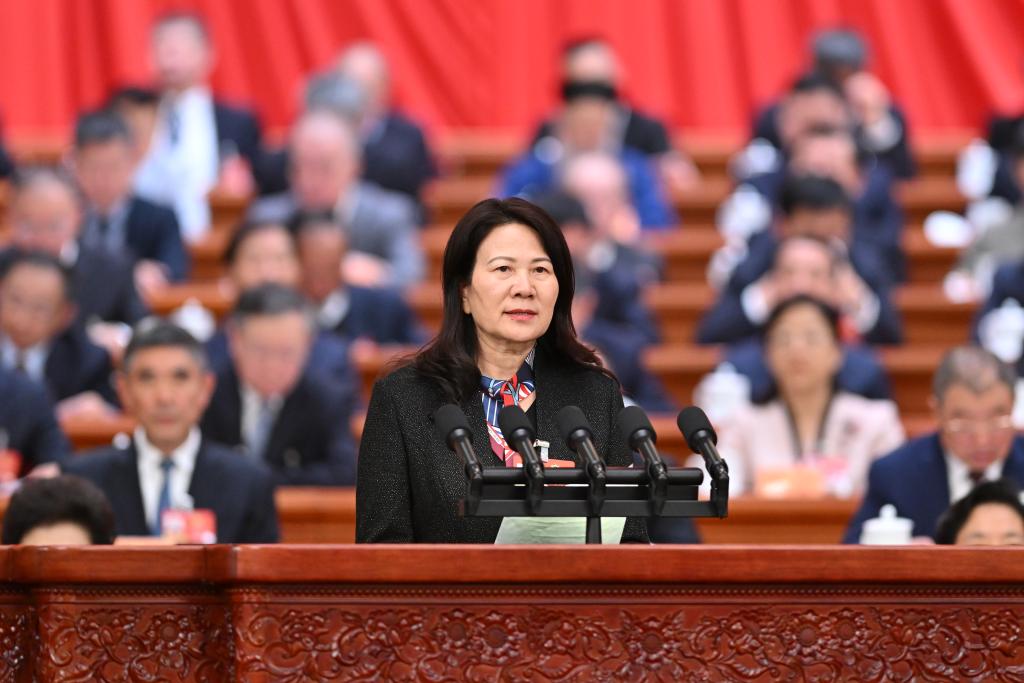 3月7日,全國政協(xié)十四屆四次會議在北京人民大會堂舉行第二次全體會議。這是賀丹委員作題為《優(yōu)化生育支持政策和激勵措施 構(gòu)建積極生育保障體系》的發(fā)言。新華社記者 岳月偉 攝