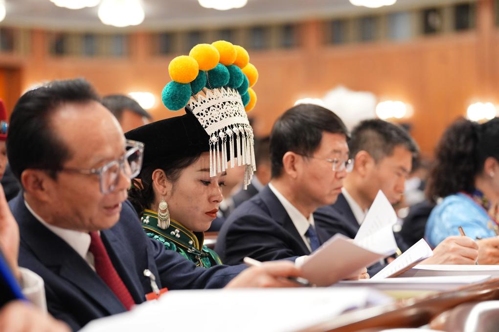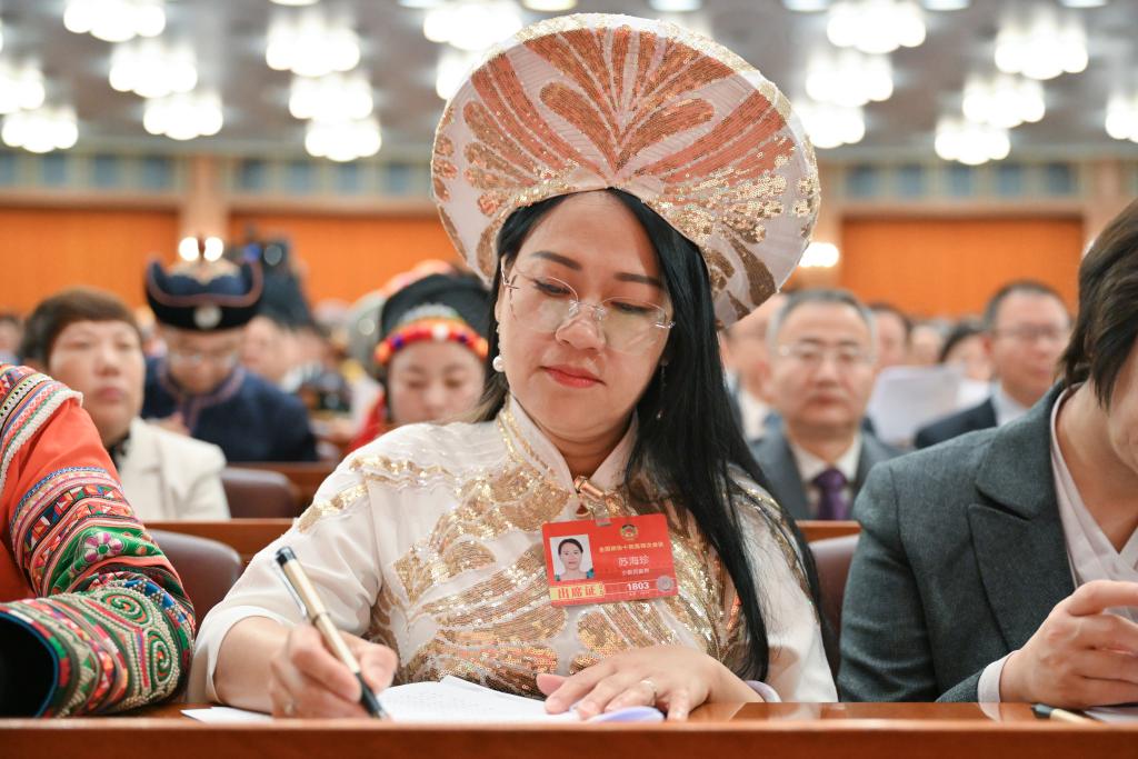 3月4日,蘇海珍委員在全國政協(xié)十四屆四次會(huì)議開幕會(huì)上。新華社記者 陳益宸 攝