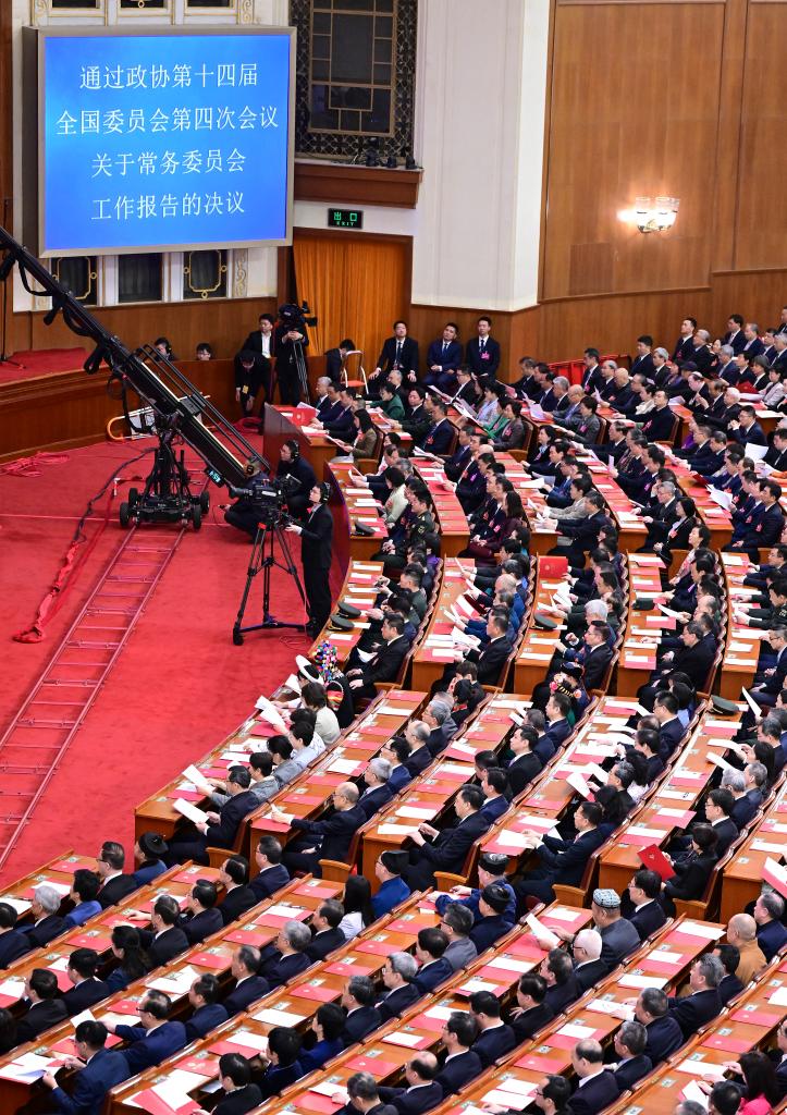 3月11日,全國政協(xié)十四屆四次會議在北京人民大會堂舉行閉幕會。新華社記者 王曄 攝