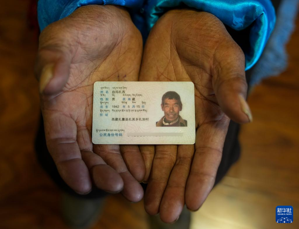 白瑪扎西展示自己的身份證(3月26日攝)。